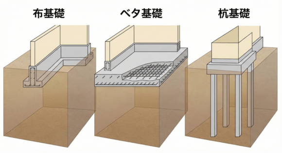 🏗️ 第1章 解体費用を左右する「基礎」のタイプ:布基礎・ベタ基礎・杭基礎の解体難易度